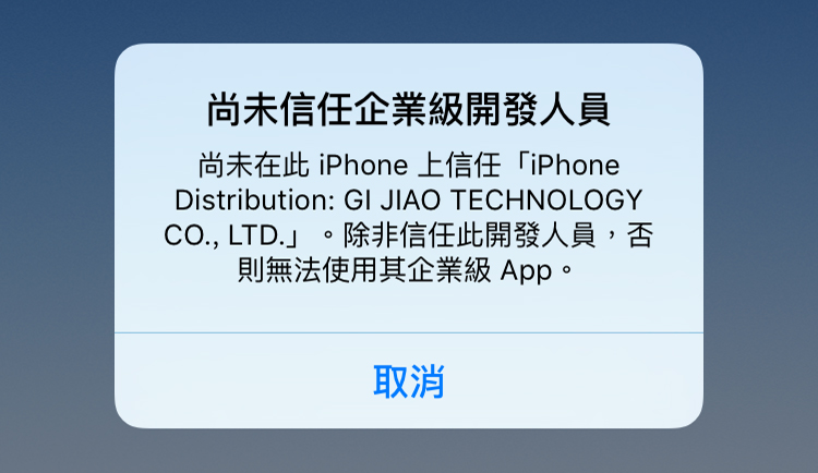 iOS9 安裝後出現 "尚未信任企業級開發人員" 提示,如何處理?